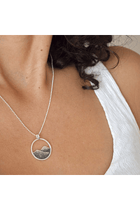 Este bello colgante es parte de la colección paisajes. Fragmentos de paisajes transformados en joyas únicas y que nos conectan con la energía de la naturaleza y sus montañas.